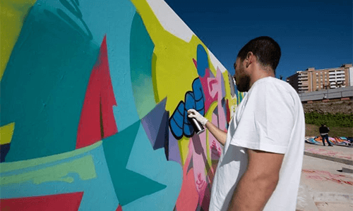 Murais – Distinguem-se pelas pinturas e desenhos de grandes dimensões, elaborados e, geralmente, executados de forma legal, diretamente sobre as paredes, edifícios e muros do espaço público.